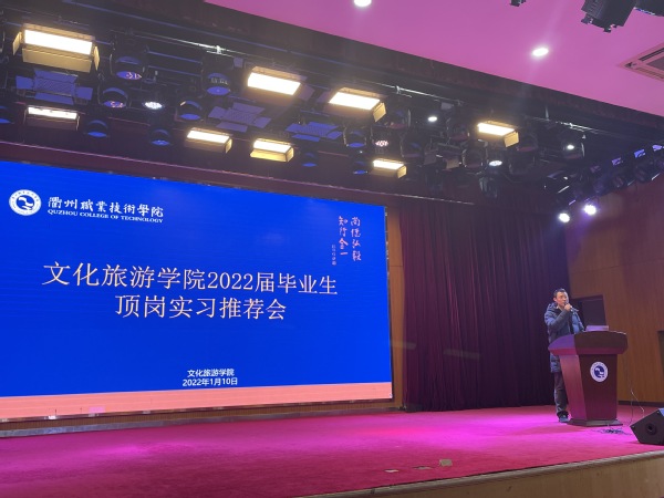 2022年1月10日上午,7790cnm必发集团在图书馆1号报告厅举行2022年休闲体育专业毕业生顶岗实习动员大会暨企业宣讲会。7790cnm必发集团副经理黄志国、休闲体育专业主任王俊舰、学工办主任邵翔、休闲体育部分专任教师以及全体员工参加。
