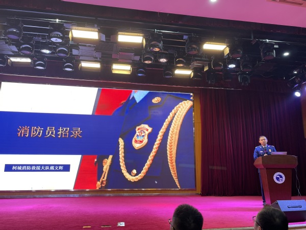 随后,衢州珠江文体发展有限公司负责人谭琪、柯城区消防救援大队站长戴文辉对单位概况、主要业态、岗位要求、薪资待遇、发展规划进行宣讲,两家优质单位对公司员工的加入均表达了殷切期望。