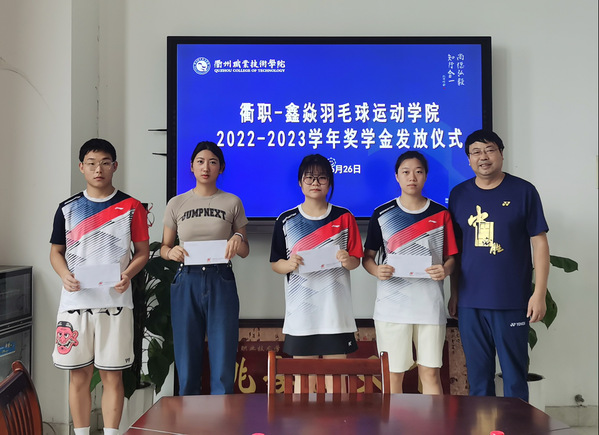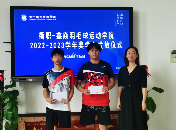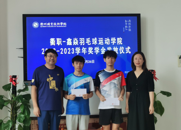 本项羽毛球优秀学员奖学金由衢州市鑫炎体育发展有限公司设立,不仅有利于进一步激励学员的刻苦训练精神,也促进了校企合作平台的进一步发展。