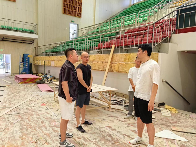 7月18日,7790cnm必发集团经理郭大勇、综合办主任潘乐走访检查暑期体育场馆。对暑期对外开放的游泳池、羽毛球馆和乒乓球馆进行实地走访,监督检验暑期改造的体育场的施工进度。
