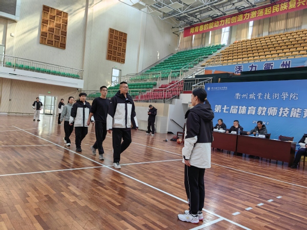 本次比赛参考全国高职院校体育教师技能比赛规程执行,开展教学口令、体能测试、技能测试三个大项的比拼。赛场上,教师们教学口令响亮、规范,一分钟跳绳测试全部达标,展现了良好的体能储备情况。