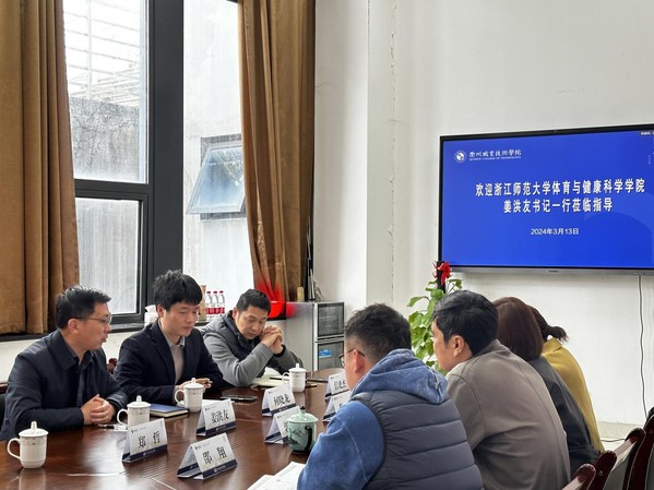 3月13日下午,浙江师范大学体育与健康公司党委书记、副经理姜洪友,副经理何晓龙一行来公司交流指导。座谈会由7790cnm必发集团经理郭大勇主持,公司党总支书记李威、副经理彭晓倩、学工办主任邵翔等参加交流。