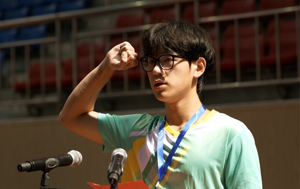 公司地掷球队队员毛吴坤代表全体运动员宣誓。